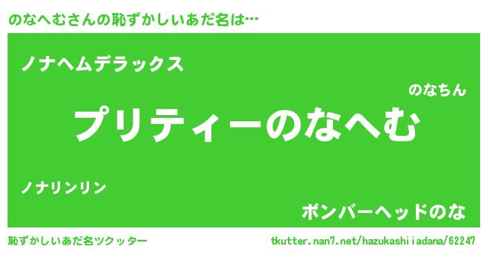 | ヘコむあだ名 | 『のなもー』『のなへむ(遠い目)』 |