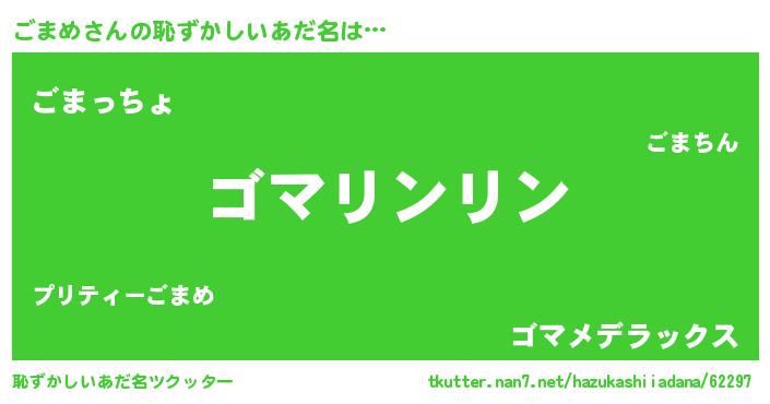 | ヘコむあだ名 | 『ごまっちょ』『牛乳』『ごまめ(笑)』 |