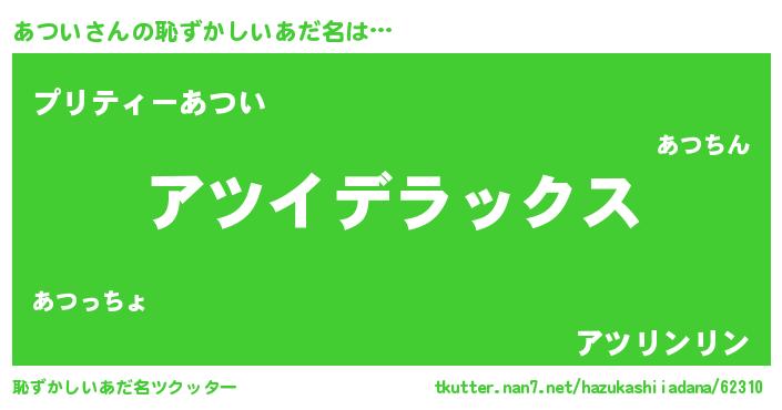 | ヘコむあだ名 | 『あつもー』『あつぷりん』『つくし』 |