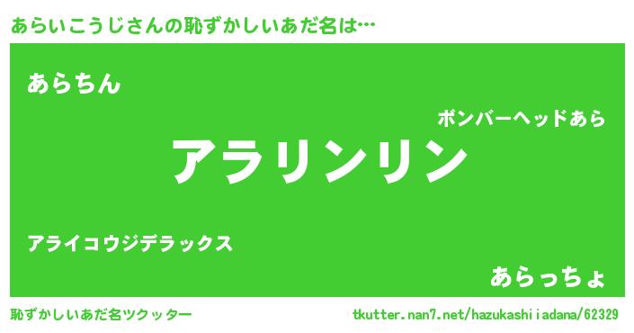 | 意味不明あだ名 | 『とにかく怪しいあらいこうじ』 |