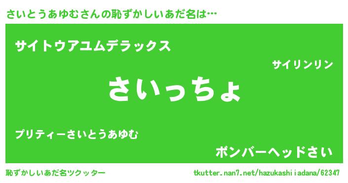 | ファンタジー風あだ名 | 『エターナルサイトウアユムー』 |