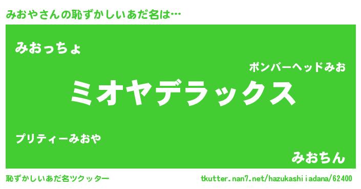 | ヘコむあだ名 | 『豆乳』『みおや(苦笑)』『みおもー』 |