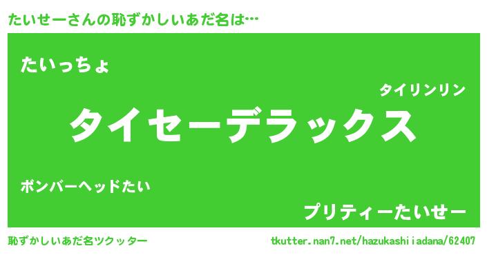 | ヒーロー風カッコイイあだ名 | 『究極戦士タイセー』『仮面タイダー』 |