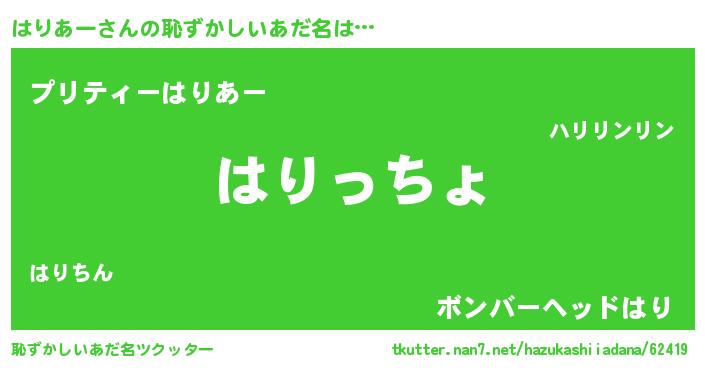 | 男性向けラノベタイトル風あだ名 | 『ハリアースレイヤー』『はりあーの憂鬱』 |