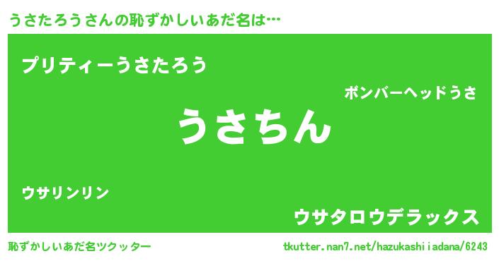 | 意味不明あだ名 | 『永久保存うさたろう』『自称うさたろう』 |