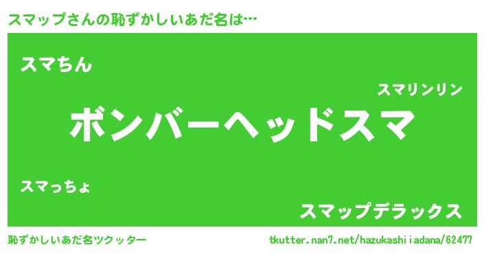 | ヘコむあだ名 | 『スマップ(笑)』『スマっぺ』 |