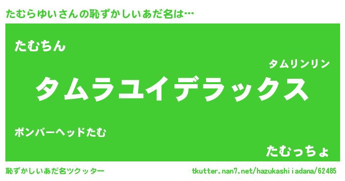 | 男性向けラノベタイトル風あだ名 | 『Re:たむらゆいから始める異世界生活』 |
