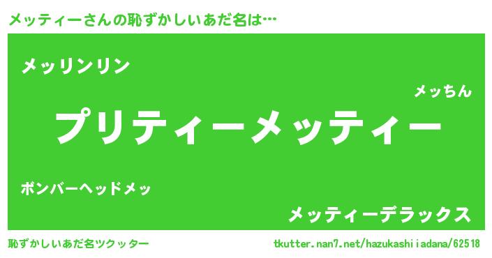 | 男性向けラノベタイトル風あだ名 | 『メッティーの憂鬱』 |