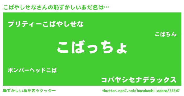 | 意味不明あだ名 | 『住所不定無職こばやしせな(65歳)』 |