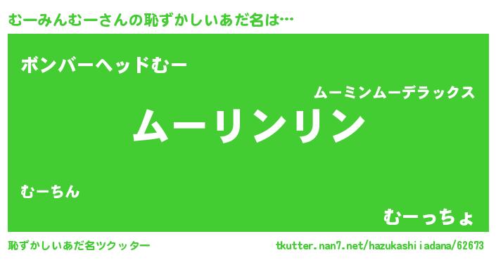 | 男性向けラノベタイトル風あだ名 | 『ダンジョンにむーみんむーを求めるのは間違っているだろうか』 |