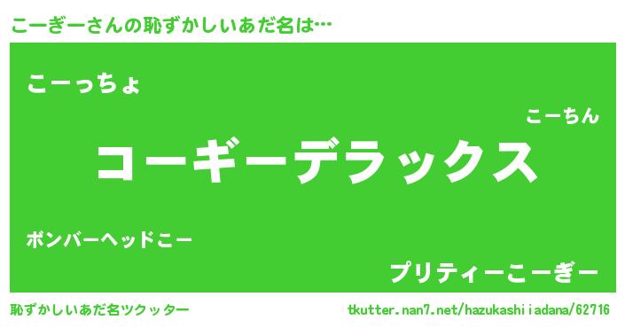 | 意味不明あだ名 | 『住所不定無職こーぎー(93歳)』 |