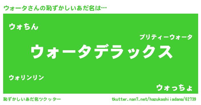 | 意味不明あだ名 | 『自称ウォータ』『永久保存ウォータ』 |