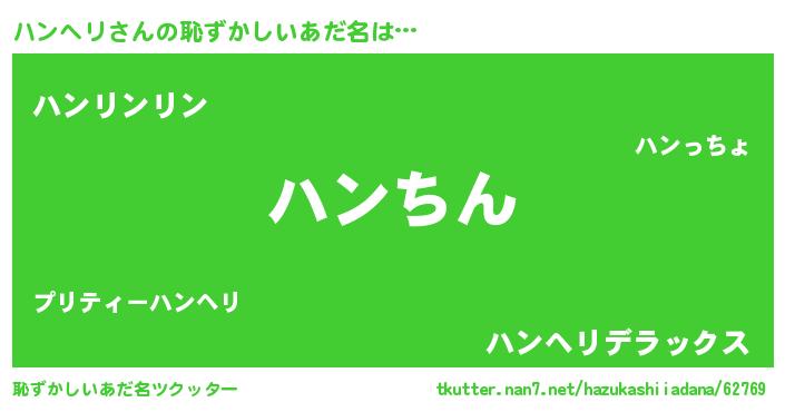 | 意味不明あだ名 | 『永久保存ハンヘリ』『自称ハンヘリ』 |