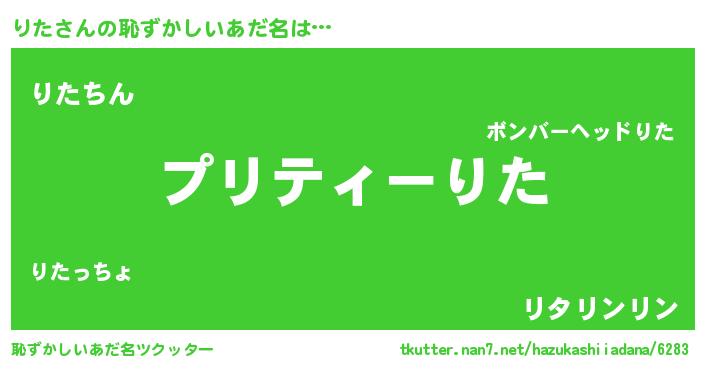 | ヘコむあだ名 | 『りたふぇ~』『りた(遠い目)』 |
