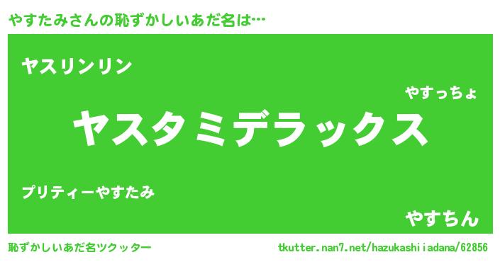 | 意味不明あだ名 | 『自称やすたみ』『永久保存やすたみ』 |