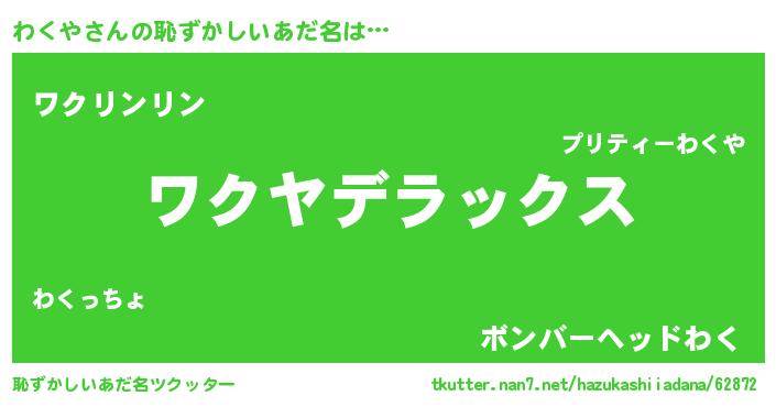 | 意味不明あだ名 | 『自称わくや』『住所不定無職わくや(10歳)』 |