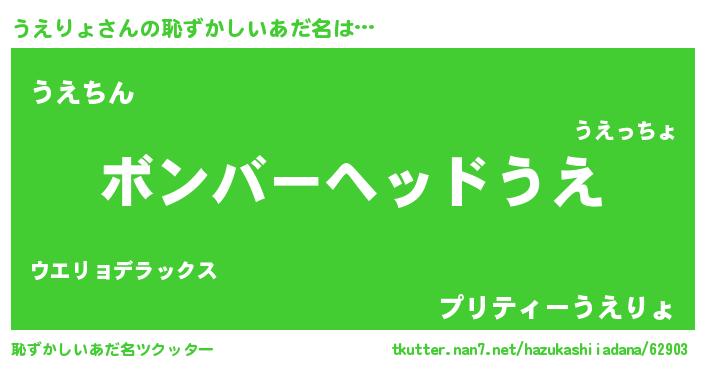 | ヒーロー風カッコイイあだ名 | 『慈愛の使者うえりょ』『ネオウエリョ』 |