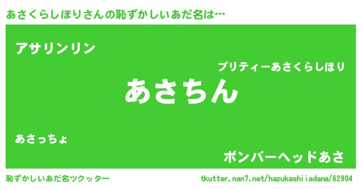 | 胡散臭い通販商品みたいなあだ名 | 『前代未聞の健康食品…その名も「あさくらしほり」』 |