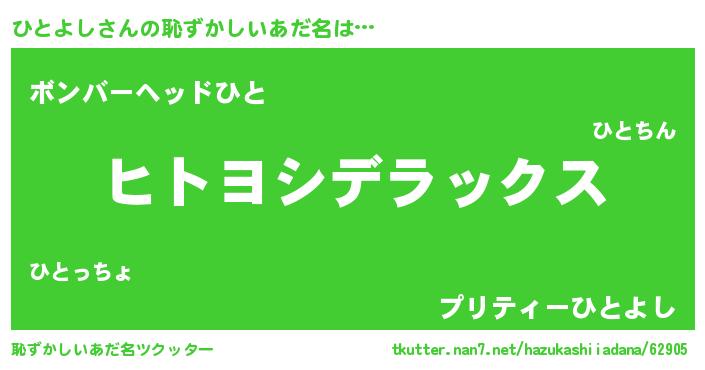 | ヒーロー風カッコイイあだ名 | 『究極戦士ヒトヨシ』『仮面ヒトダー』 |