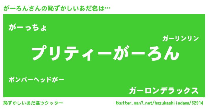 | 胡散臭い通販商品みたいなあだ名 | 『必ず成功する霊験あらたかなお札…その名も「がーろん」』 |