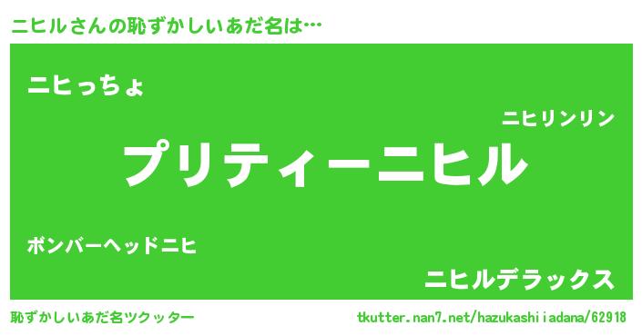 | ポケモン風あだ名 | 『ニヒキング』『ニヒチュウ』 |