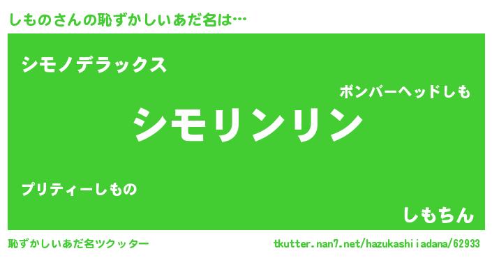| 意味不明あだ名 | 『とにかく怪しいしもの』『自称しもの』 |