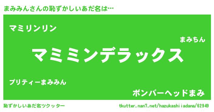 | 男性向けラノベタイトル風あだ名 | 『Re:まみみんから始める異世界生活』 |