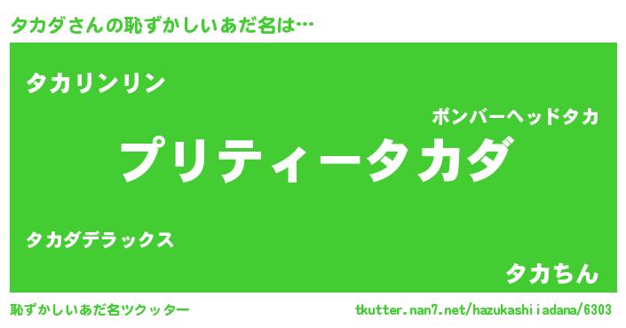 | ヒーロー風カッコイイあだ名 | 『仮面タカダー』『スーパータカダ』 |