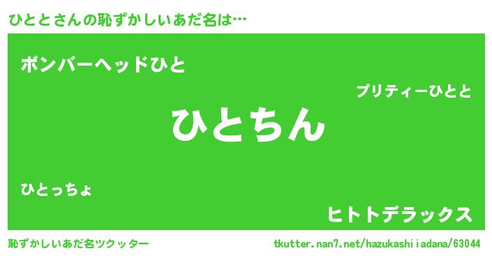 | ヘコむあだ名 | 『ひとと(遠い目)』『ひとにゅー』 |