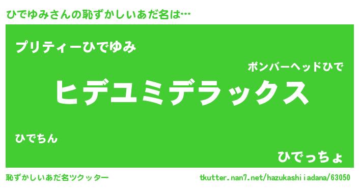 | 意味不明あだ名 | 『自称ひでゆみ』『ペロリンひでゆみ』 |
