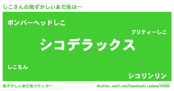 | 男性向けラノベタイトル風あだ名 | 『はたらくしこさま!』『魔弾の王としこ』 |