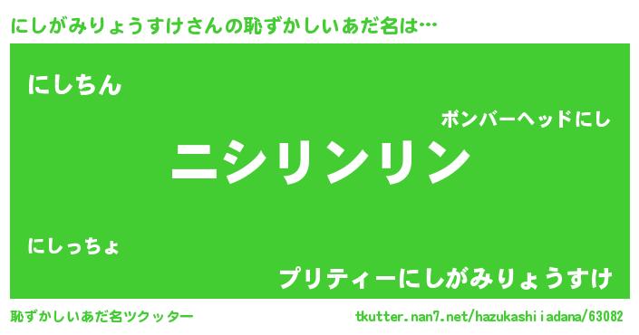 | ヘコむあだ名 | 『にしお』『にしがみりょうすけ(遠い目)』 |