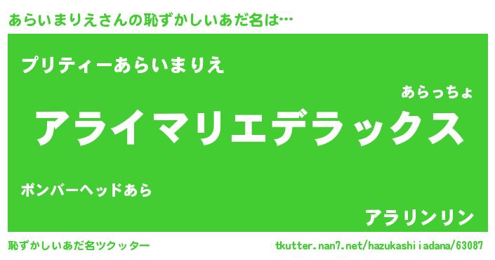 | 意味不明あだ名 | 『自称あらいまりえ』 |