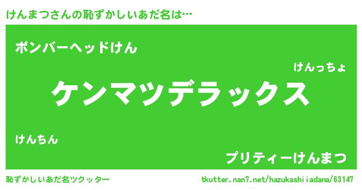 | 意味不明あだ名 | 『自称けんまつ』『たけのこ科けんまつ属』 |