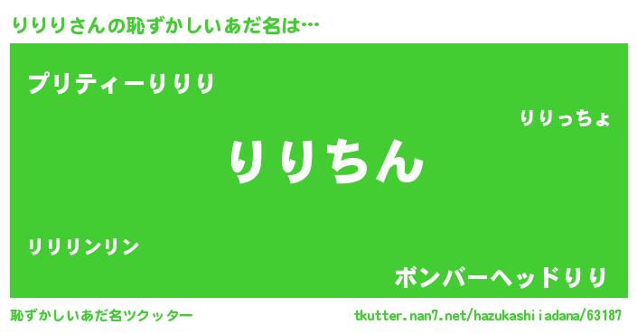 | 欧米人風あだ名 | 『ダルビッシュりりり』『マイケルりりり』 |