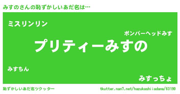| ヘコむあだ名 | 『みすもー』『みす太郎』『なまこ酢』 |