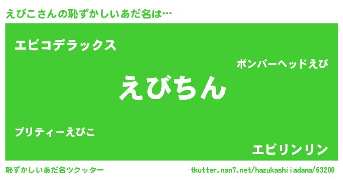 | 意味不明あだ名 | 『永久保存えびこ』『自称えびこ』 |