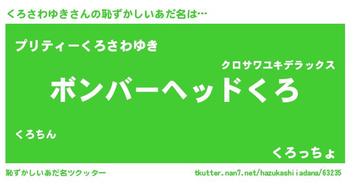 | 男性向けラノベタイトル風あだ名 | 『冴えないくろさわゆきの育てかた』 |