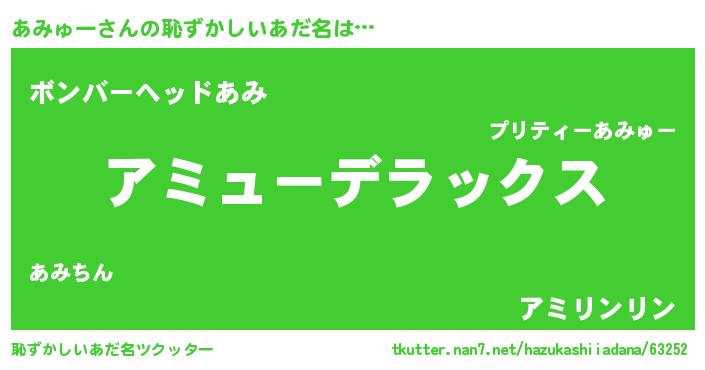 | 女子向けラノベタイトル風あだ名 | 『闇のあみゅー』『死神あみゅーの再婚』 |
