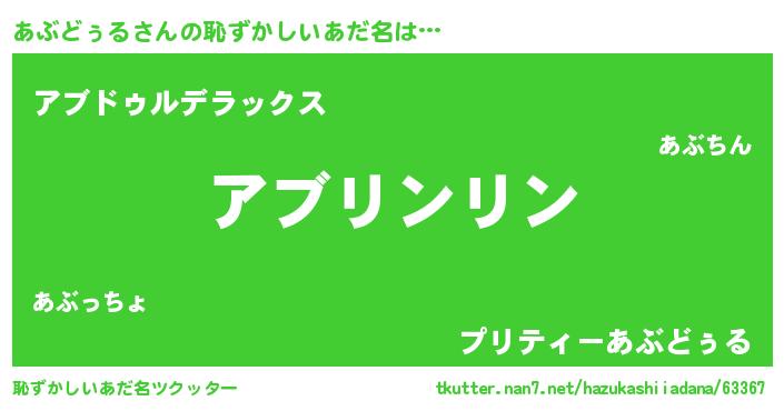 | 男性向けラノベタイトル風あだ名 | 『はたらくあぶどぅるさま!』 |