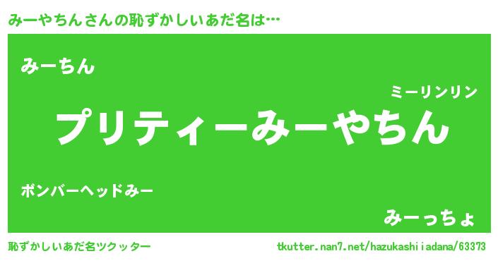 | 欧米人風あだ名 | 『マイケルみーやちん』 |