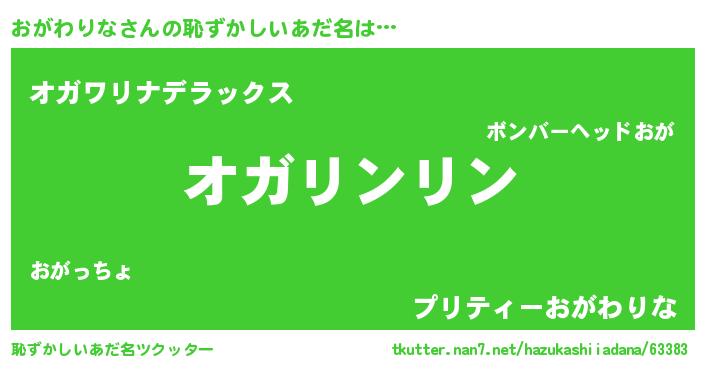 | 男性向けラノベタイトル風あだ名 | 『転生したらおがわりなだった件』 |