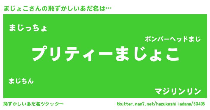 | 男性向けラノベタイトル風あだ名 | 『まじょこの憂鬱』『緋弾のマジョコ』 |