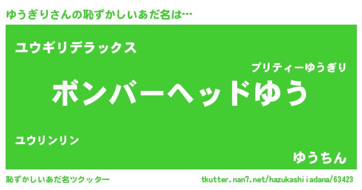 | ヘコむあだ名 | 『ゆうぎり(遠い目)』『ゆうっふぃ~』 |