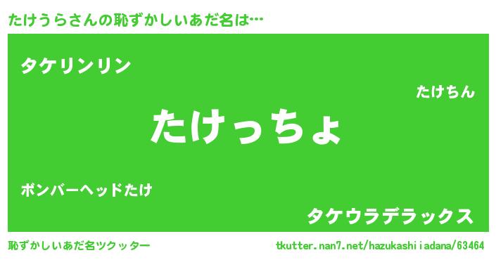 | 意味不明あだ名 | 『たけうらフォーエバー』『自称たけうら』 |