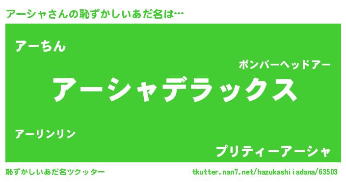 | 意味不明あだ名 | 『自称アーシャ』『永久保存アーシャ』 |