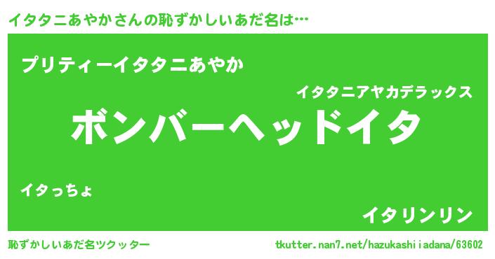 | 欧米人風あだ名 | 『イタタニあやか・ステッグマイヤー』 |