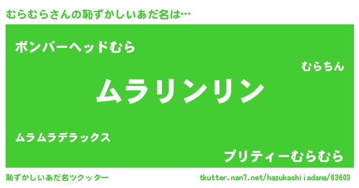 | 意味不明あだ名 | 『住所不定無職むらむら(85歳)』 |