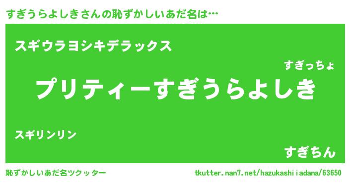 | ヒーロー風カッコイイあだ名 | 『スーパースギウラヨシキ』 |