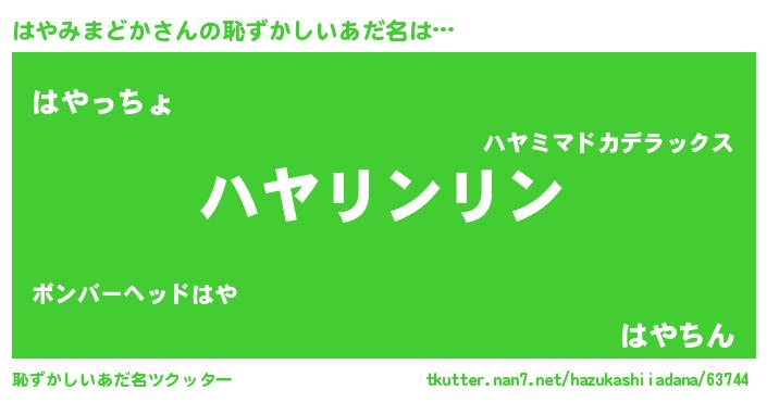 | ポケモン風あだ名 | 『ヒハヤミマドカ』『ハヤミダネ』 |